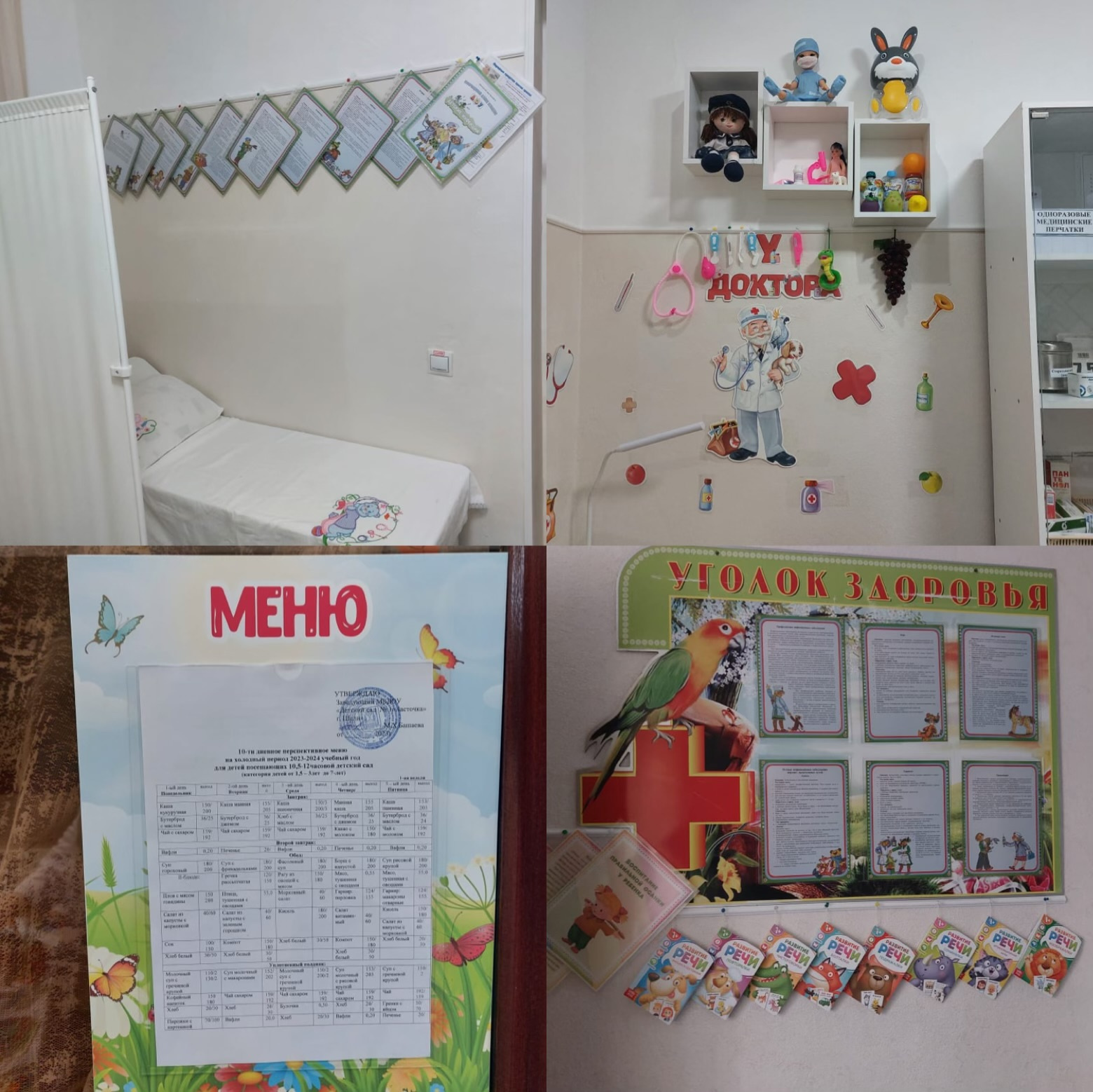 Оформление стендов и уголков в детском саду, в их содержания включена текущая информация.